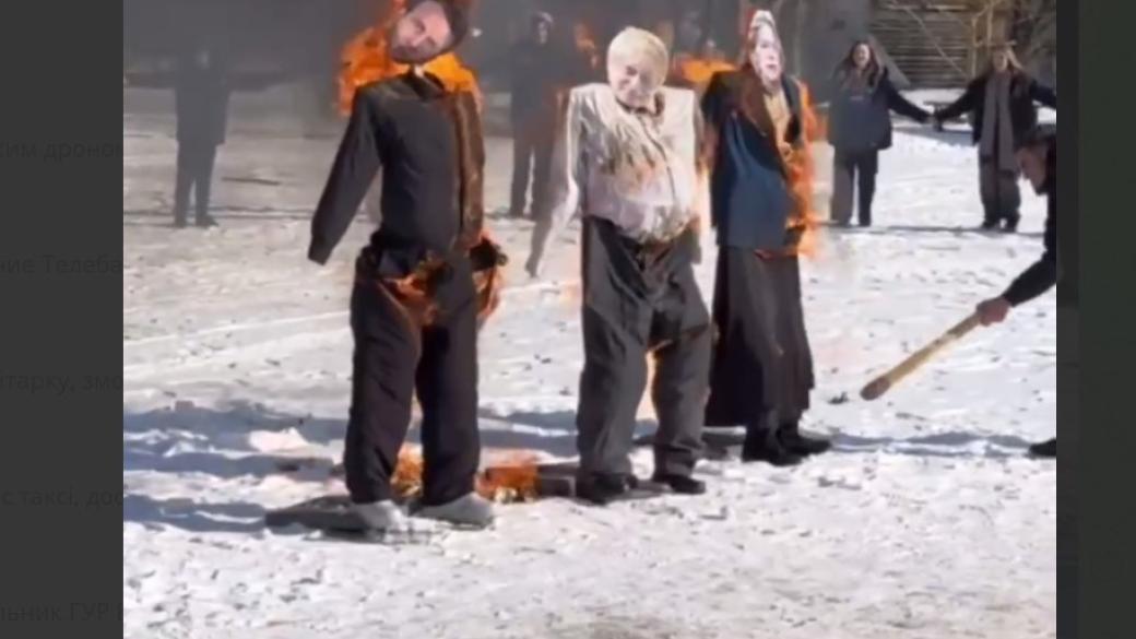 В оккупированном Донецке в честь Масленицы сожгли чучела европейских политиков Бориса Джонсона, Урсулы фон дер Ляйен и Эммануэля Макрона. Об этом сообщают подконтрольные ОРДО паблики.