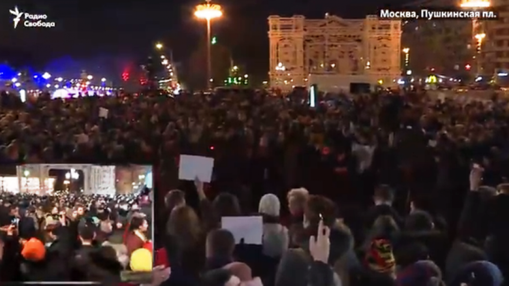 В Москве на Пушкинской площади проходит стихийный митинг в память о жертвах страшного пожара в кемеровском торговом центре «Зимняя вишня».