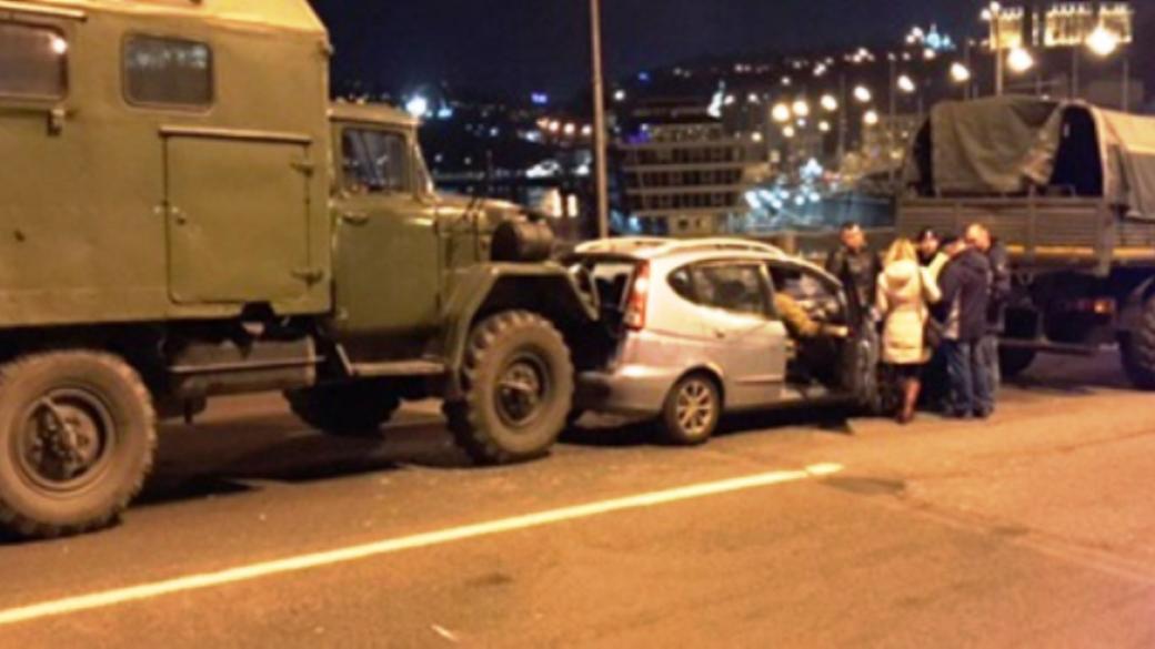 Как отмечают очевидцы, Chevrolet двигался по средней полосе и в него въехал военный грузовик. По предварительным данным, причиной столкновения стали неисправные тормоза в грузовом авто. В ходе ДТП у Chevrolet вылетело заднее стекло и поврежден корпус.