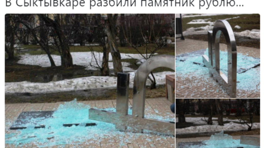 В российском городе Сыктывкаре в результате акта вандализма пострадал памятник рублю.