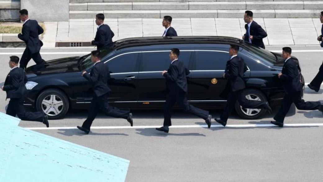При этом, когда же лидер КНДР после утренних переговоров с Ином сел в свой Mercedes, охранники оцепили автомобиль, сформировав живой щит, и трусцой сопровождали его.