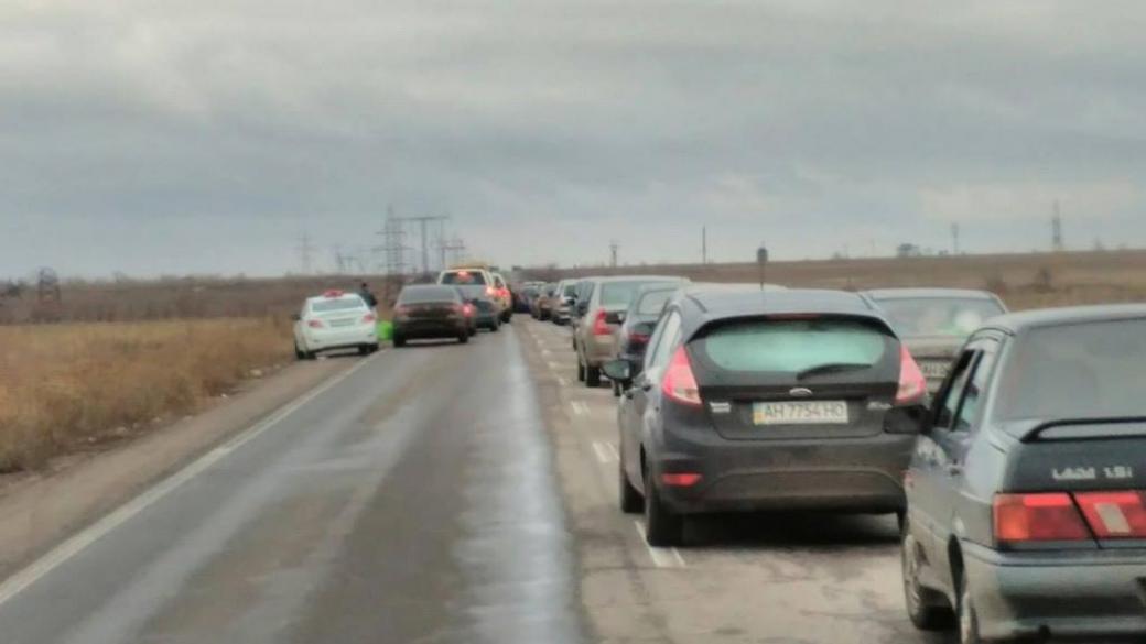 Сегодня на Майорске между постами 11 авто ночевало на укр. ноле…».