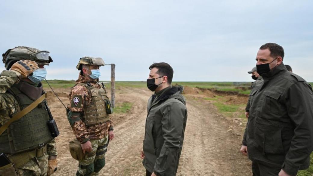 Сегодня президент Украины Владимир Зеленский с рабочей поездкой посетил Херсонскую область, где побывал на передовых позициях украинских военных на административной границе с аннексированным Крымом. Об этом сообщает пресс-служба главы государства.