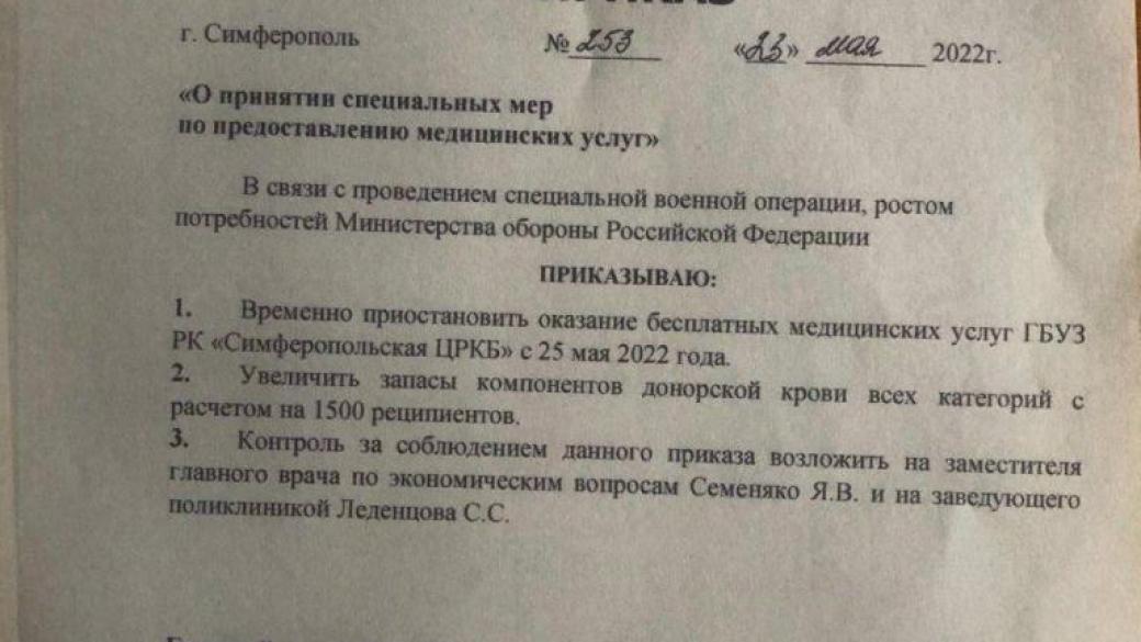 В аннексированном Крыму мощности всех местных больниц в связи с так называемой «спецоперацией» в Украине, будут переведены на лечение российских военнослужащих, которые получили ранение в ходе вторжения в Украину. Об этом сообщают паблики Крыма, со ссылкой на соответствующие «постановления».