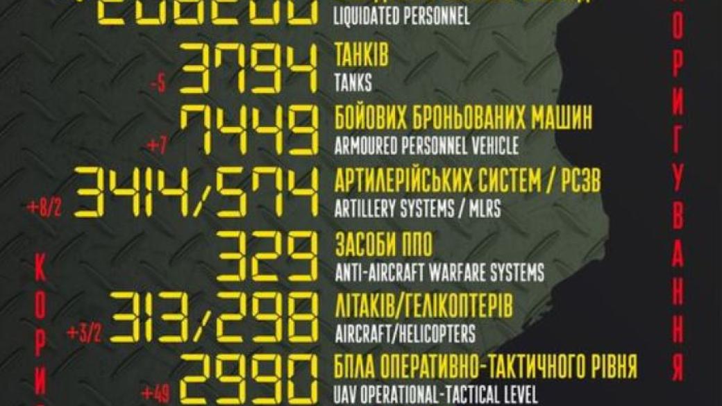 Статистика от Генштаба ВСУ: потери оккупантов за минувшие сутки