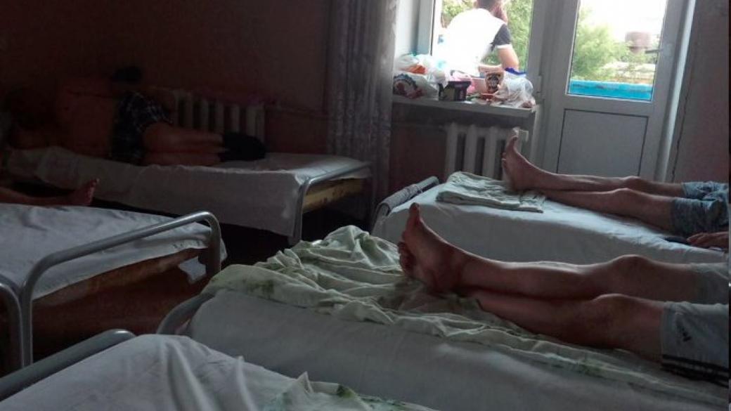 Люди лежат в больнице на Мотеле, в неврологическом отделении. Фото показывает не всю палату, а лишь ее часть, но даже на ней видно, что в помещении как минимум 6 кроватей, стоящих почти вплотную друг к другу.