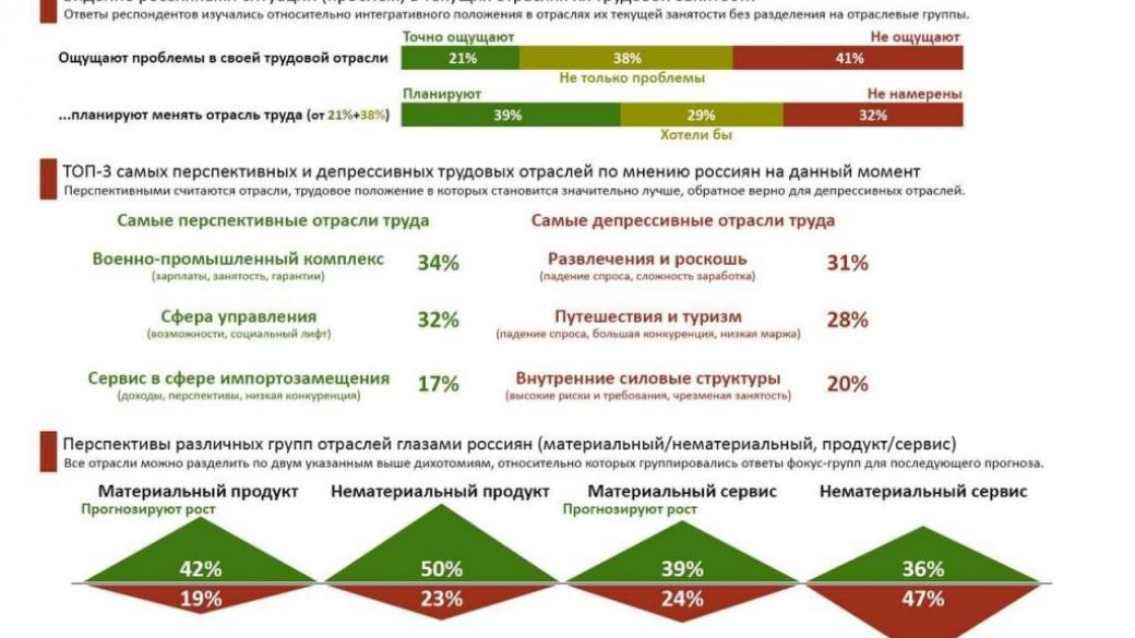 Из тех, кто столкнулся с проблемами, две трети в той или иной степени хотели бы изменить отрасль труда, но конкретного плана у них нет. Ждут любых действий от власти для улучшения ситуации