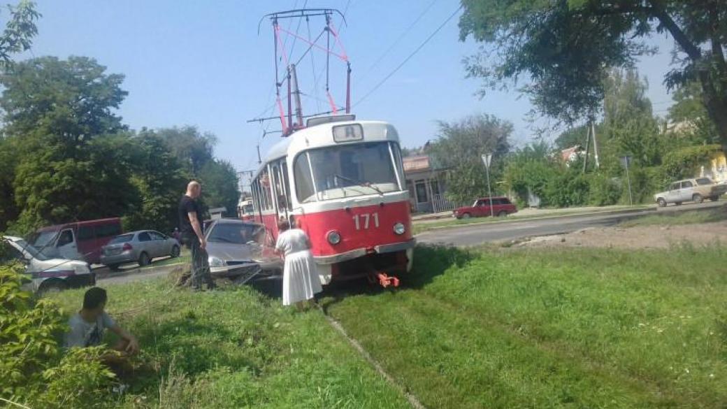 В Донецке трамвай смял «Запорожец»: опубликованы фото