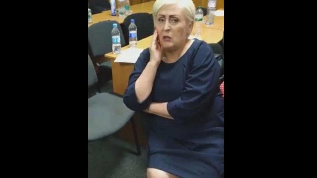 «„Ополченочка“ — в окружной комиссии Торецка. Королевская привезла ее для массовки, защищать результат кандидата от „ЗАЖОП“ ["Оппозиционная платформа — За життя», — ред] Погодина», — сказано в описании к видео.
