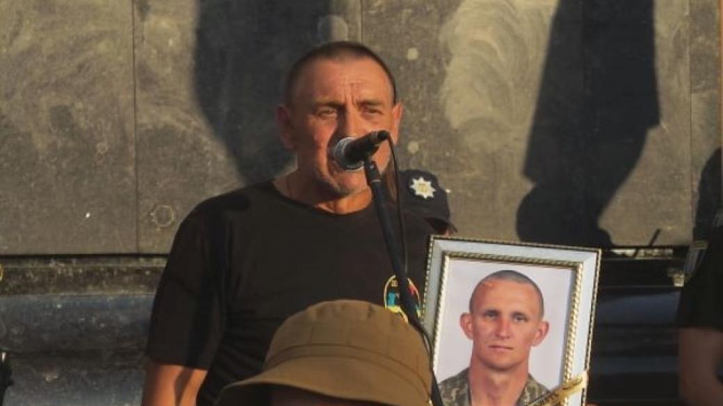 В митинге принял участие отец сержанта Ярослава Журавля, которого ранили в районе Зайцево 13 июля, Он обратился к президенту Владимиру Зеленскому: