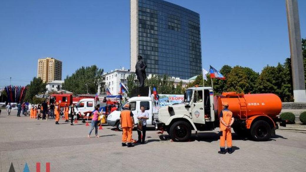 В оккупированном Донецке в честь Дня города на центральной площади Ленина, проходит выставка дорожно-строительной и коммунальной техники, а также машин городских служб. На выставке всего представлено более 30 единиц различных машин и конструкций.