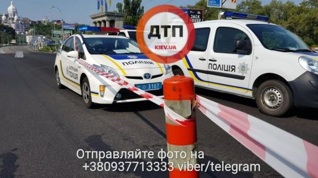 сегодня в Киеве на мосту Патона произошло ДТП с участием легкового автомобиля и ЗиЛа.