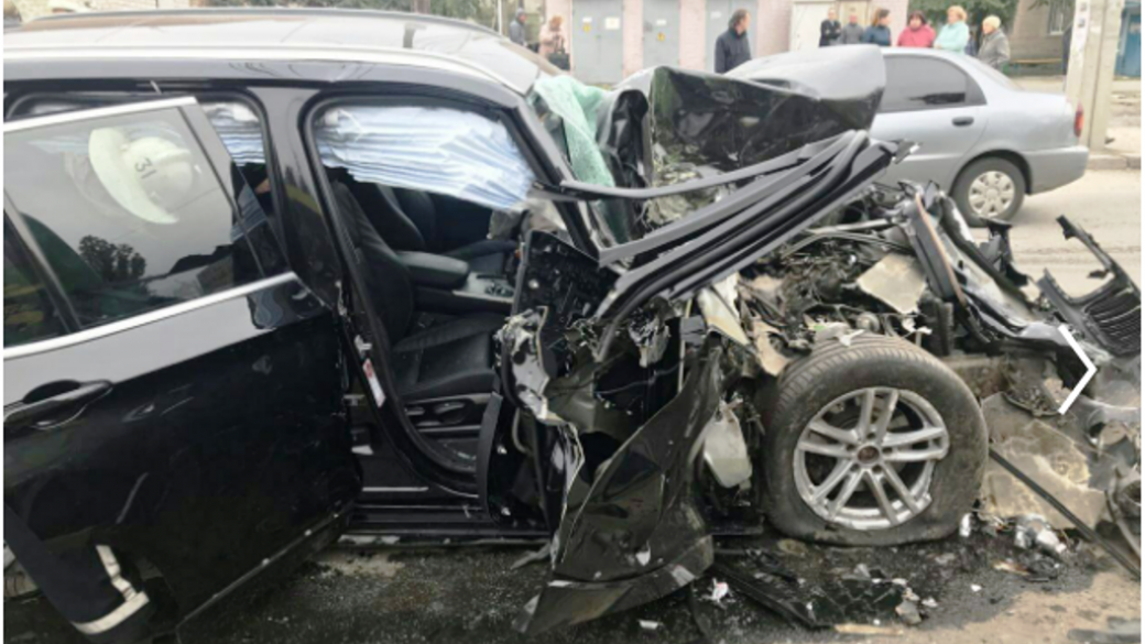 В Харькове автомобиль BMW въехал в маршрутное такси на остановке, в результате чего пострадали шесть человек.