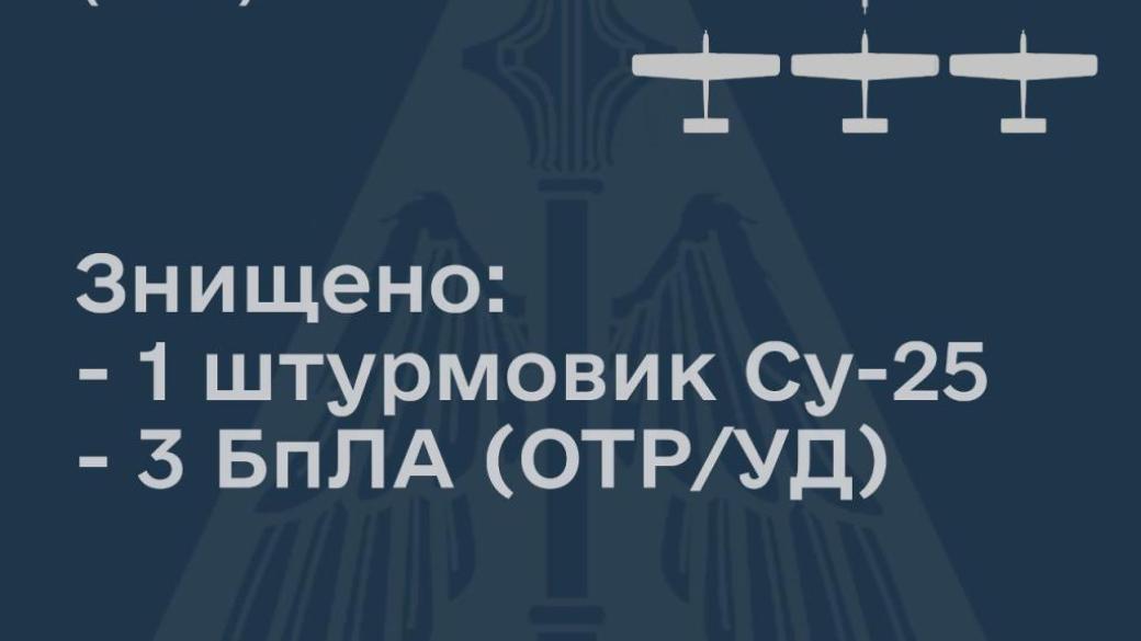 Помимо этого, с начала текущих суток подразделениями противовоздушной обороны ВС ВСУ уничтожены три БПЛА оперативно-тактического уровня, возможно – ударные (информация уточняется).