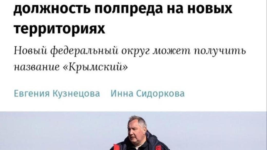Как пишет издание, необходимость создания нового федерального округа источники объясняют "непростой ситуацией", сложившейся вокруг "референдумов", в связи с чем для управления новыми территориями нужен политический тяжеловес.