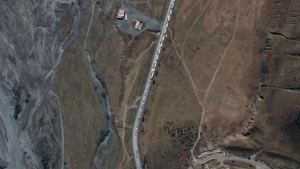 Maxar Тechnologies опубликовала спутниковые снимки огромных пробок из выезжающих из России транспортных средств и пытающихся пересечь грузинскую границу на КПП Верхний Ларс после указа президента России пути о мобилизации на войну в Украину. заявили в Maxar.