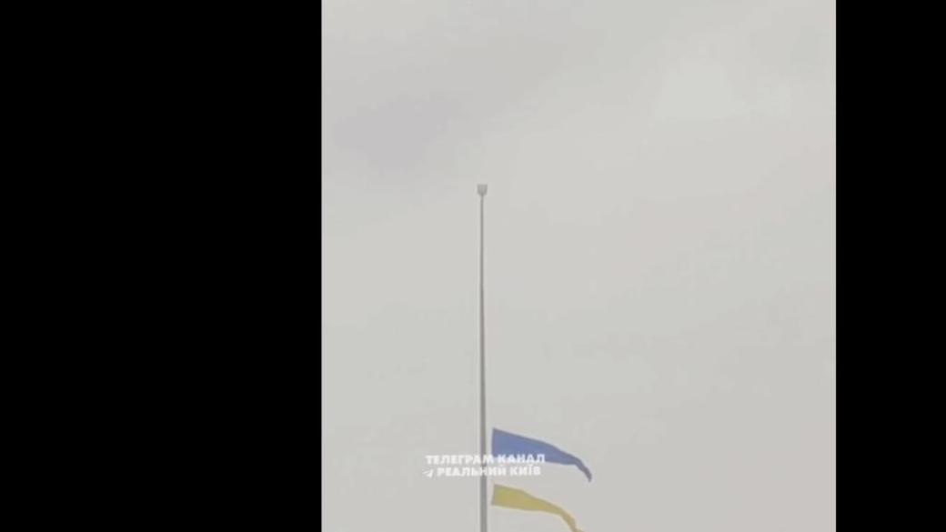 В украинской столице Киеве сильный ветер повредил самый большой флаг Украины, несмотря на то, что он был опущен еще накануне ухудшения погодных условий.