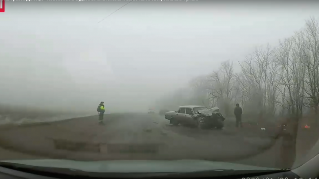 Из-за густого тумана произошло лобовое столкновение двух автомобилей. По сообщениям очевидцев, удар был такой силы, что «Жигули» разрезало пополам, а вторую машину выкинуло на обочину.
