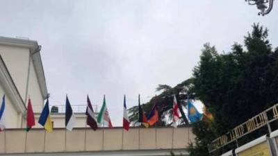 Во вторник флаг принесли к зданию Верховной Рады, чтобы на нем могли написать сообщения и народные депутаты.
