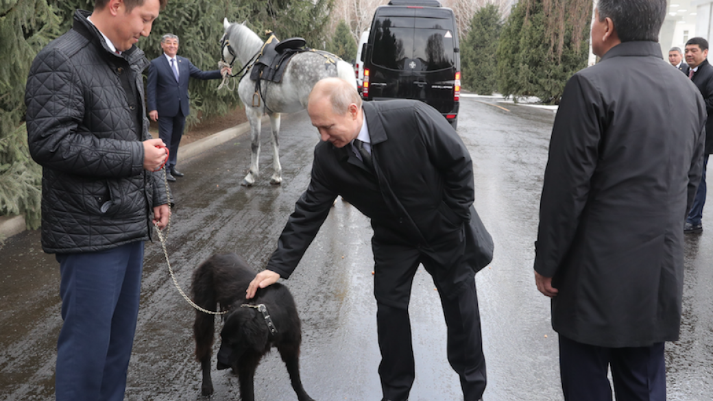 Президент России Владимир Путин в ходе визита в Киргизию получил от руководства страны лошадь породы орловский скакун и шестимесячного щенка Шерхана породы среднеазиатская борзая, тайган. Об этом сообщают российские СМИ.