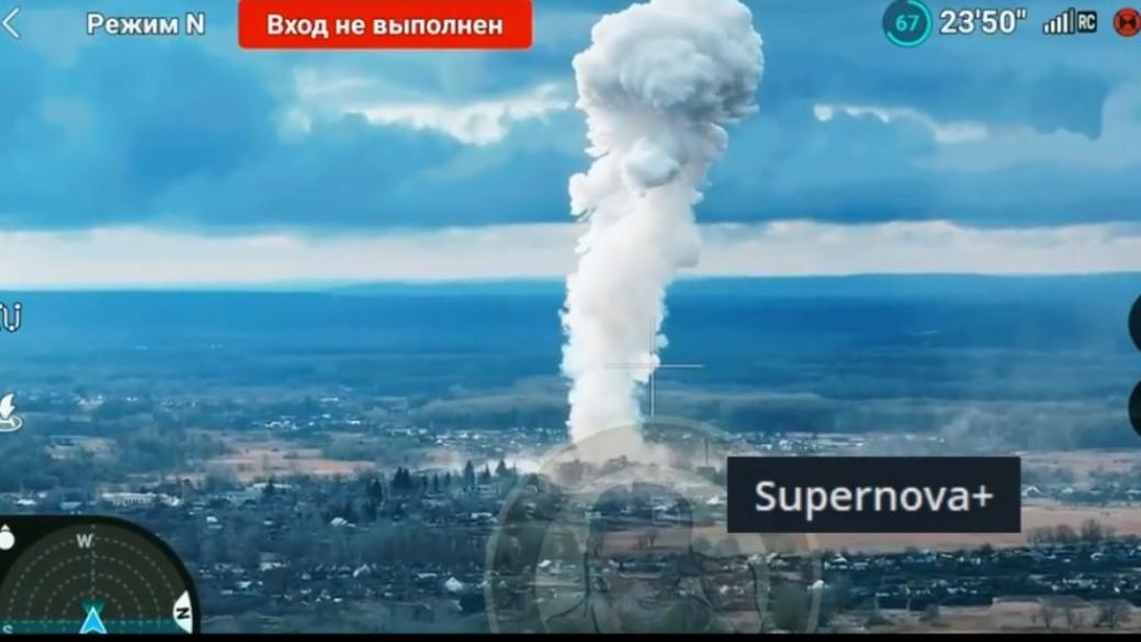 Опубликовано видео применения российскими оккупантами бомбы ОДАБ-1500 по Великой Писаревке в Сумской области.