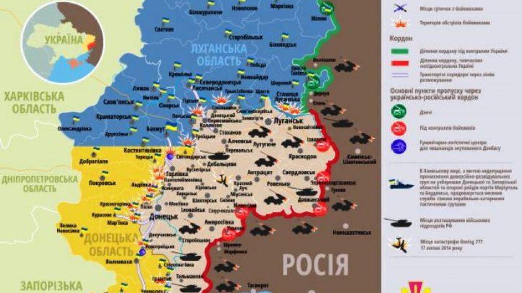 Спикер Министерства обороны Украины по вопросам АТО полковник Андрей Лысенко отметил, что за минувшие сутки в результате боевых действий ни один украинский военнослужащий не погиб, 3 — получили ранения.