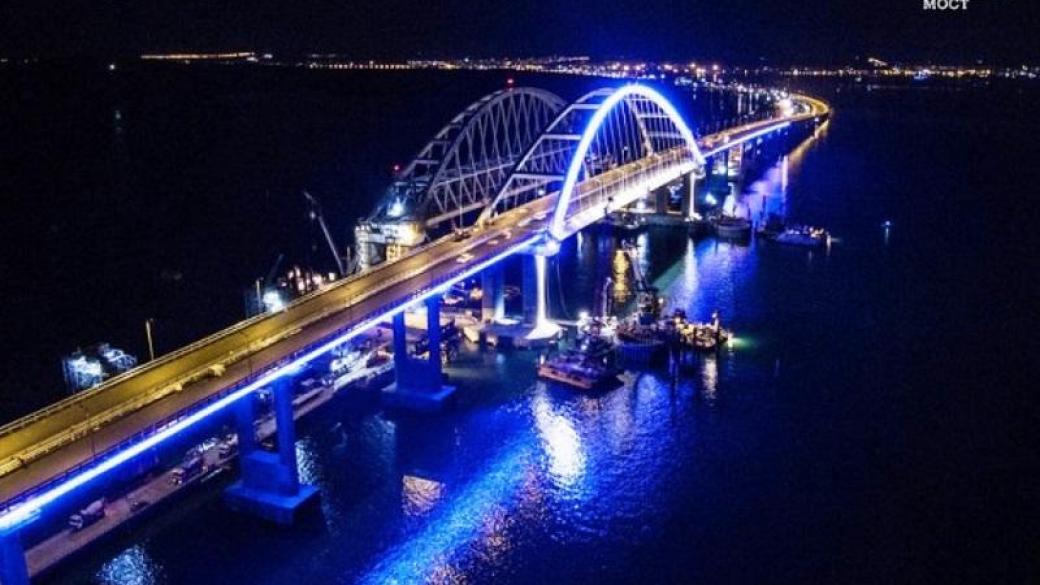 Российские оккупанты провели тестовое включение архитектурной подсветки Крымского моста.