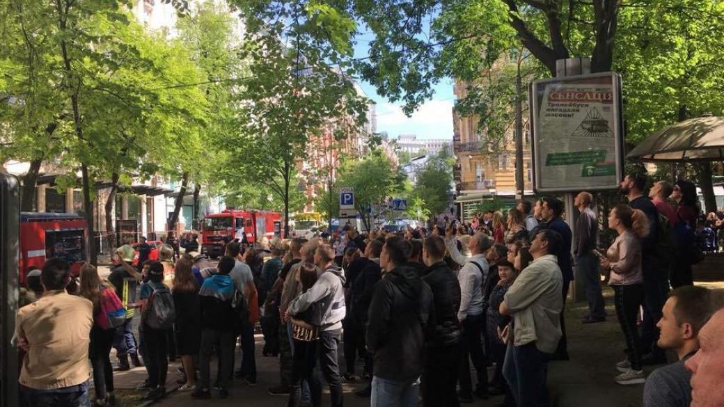 В Киеве на улице Городецкого горит исторический дом, расположенный рядом из кинотеатром «Украина».