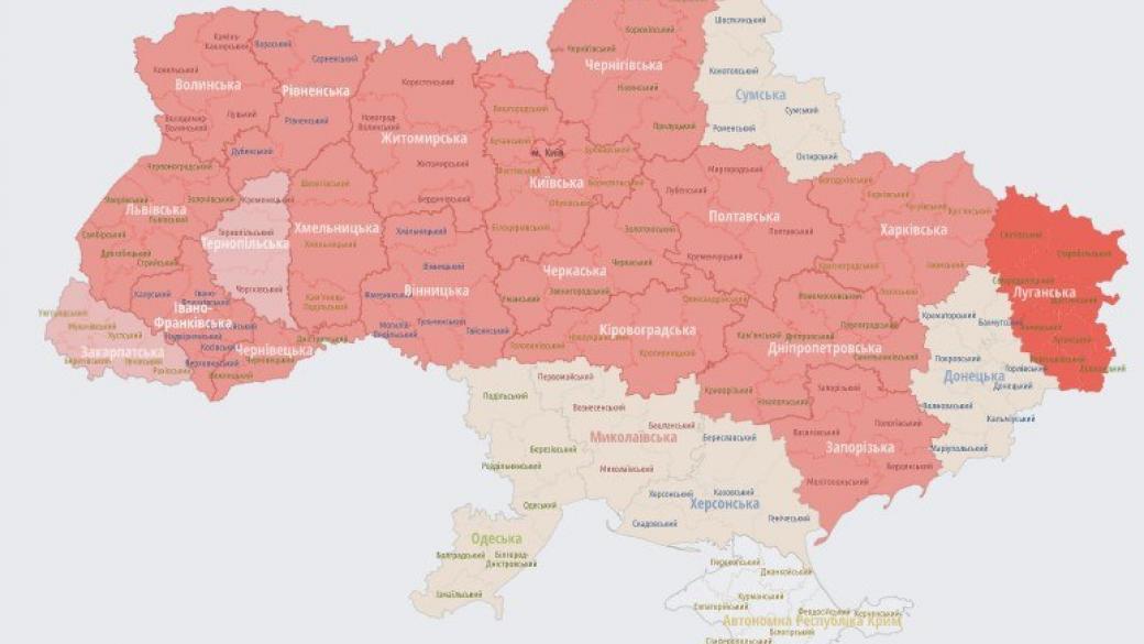 Во многих областях Украины объявлена воздушная тревога. Сирены слушает весь запад Украины, Киев, центр и все регионы, граничащие с Донбассом. По предварительным данным, опасность ракетного удара российских войск.