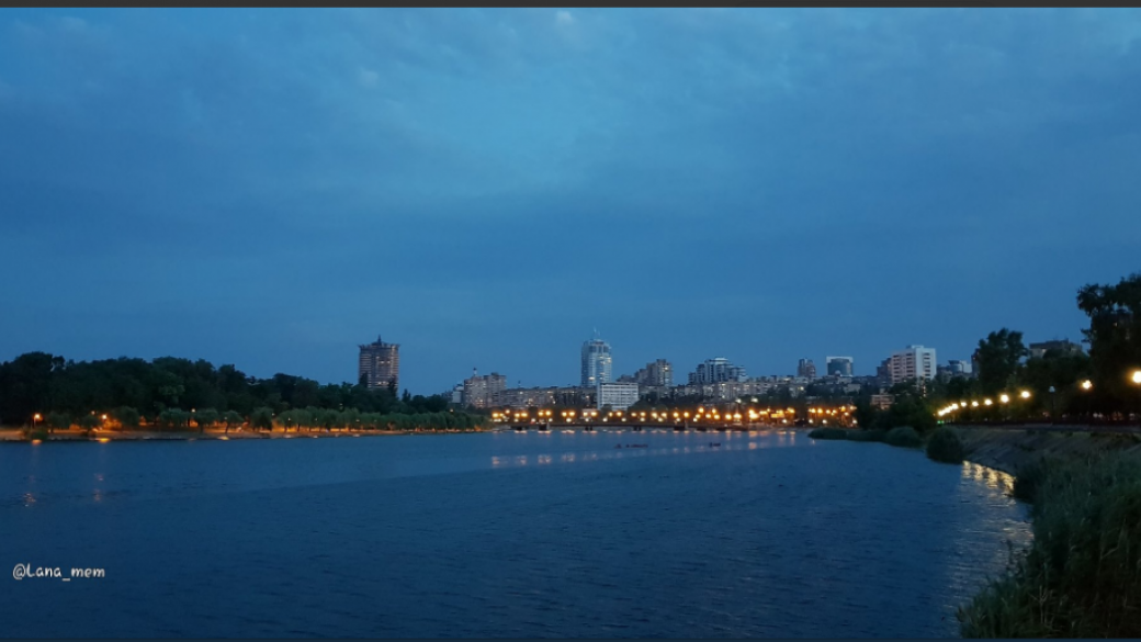 Фото сделаны в вечернее и ночное время. На них видны застывшие с 2014 года новострои, мост через Кальмиус по которому до войны перемещалось множество транспортных средств, а сейчас в темное время суток автомобилей совсем не видно. В жилых домах, что расположены на набережной в основной части окон свет не горит, так как многие жители, покинувшие из-за войны свои дома, так и не вернулись в оккупированный город.