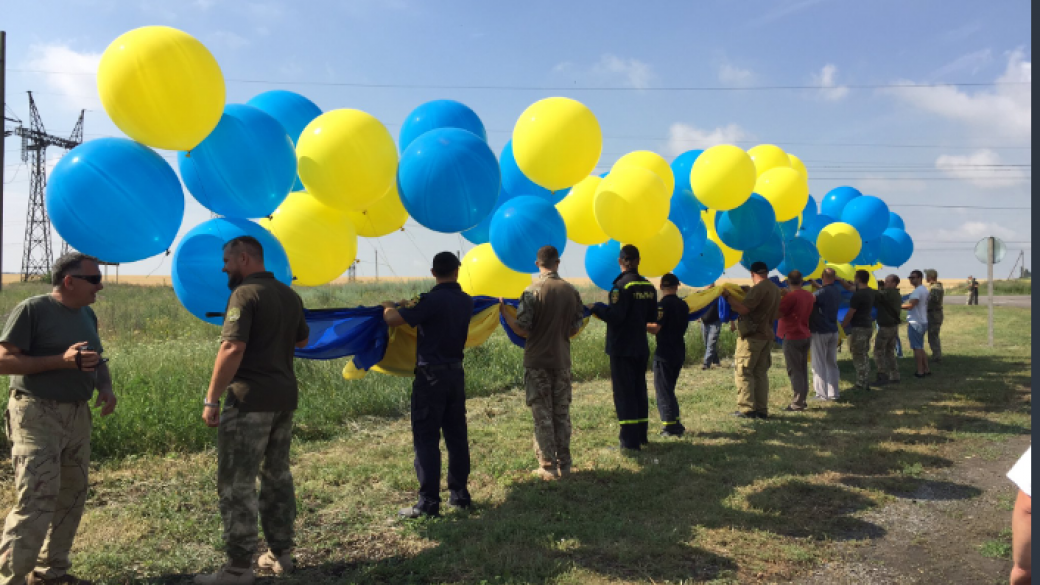 Украинские активисты, волонтеры и военные сегодня утром в День Конституции Украины отправили в сторону неподконтрольного украинскому правительству Донецка флаг Украины. Об этом сообщает пользователь «Скажений Оскар» в социальных сетях.