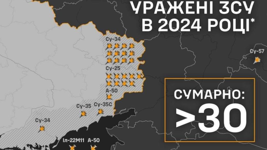 ВСУ с начала 2024 года сбили более 30 российских военных самолетов. Соответствующие данные опубликовал СтратКом ВСУ.