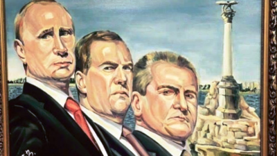 «Блевать охота»: В соцсети высмеяли портрет Путина и Медведева в Крыму