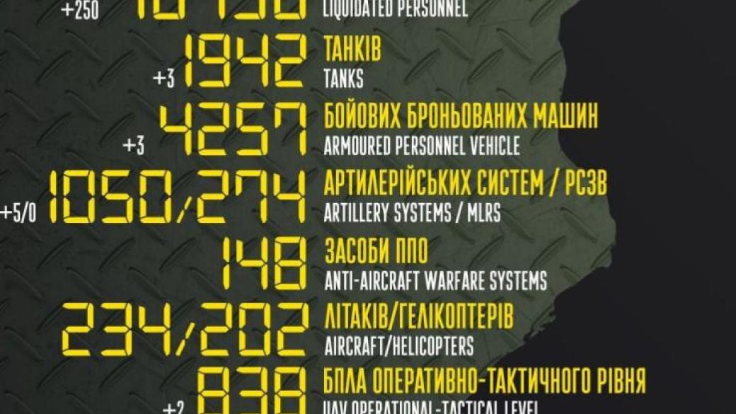 - личного состава - около 46750 (+250) человек ликвидировано,