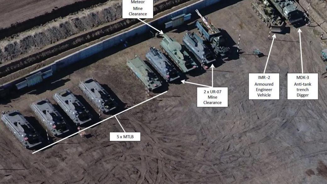 Вероятно, данная техника находилась в 30 км от линии разграничения в поселке Мирное Луганской области. Так, на снимках можно увидеть БМП, БРМД, грузовики, инженерную технику, САУ «Гвоздика», минометы и другую артиллерию.