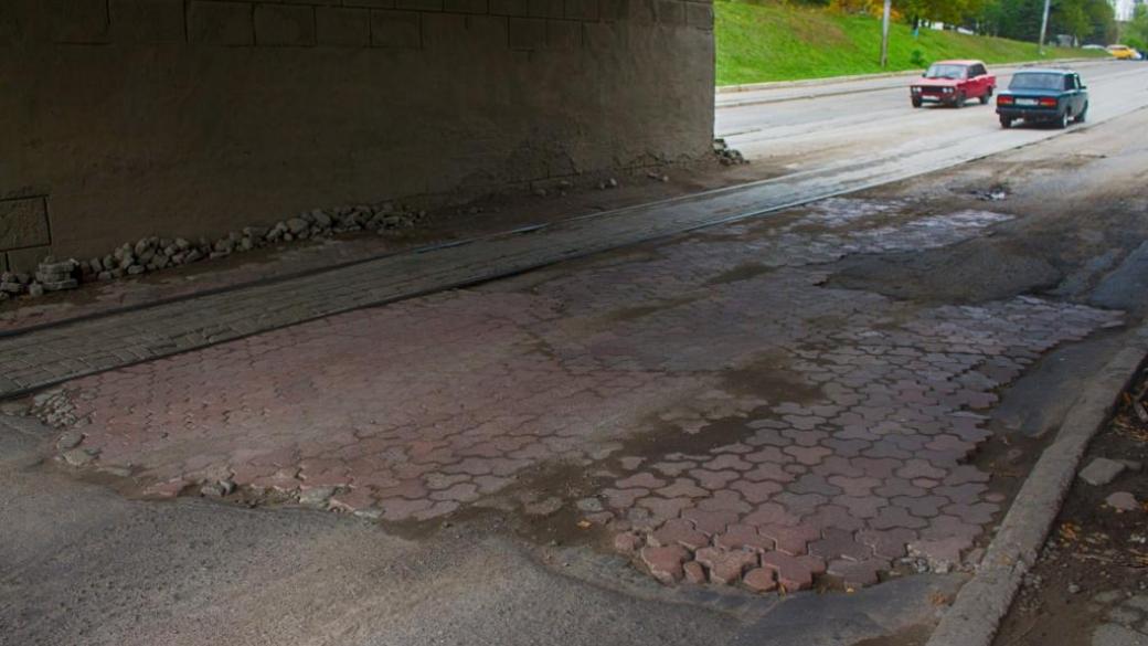 По словам горловчан, огромные дыры под железнодорожным мостом в районе шахты «Кочегарка» просто залатали старой тротуарной плиткой. Пользователей повеселило инновационное решение горловских «властей», в своих комментариях люди пишут: