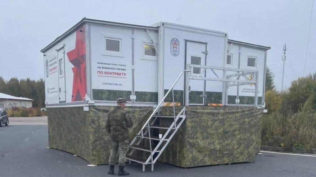 На границе России и Финляндии установили мобильный военкомат. Соответствующие фото публикуют российские паблики.