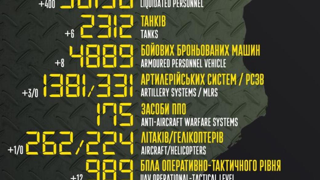 - личного состава - около 58150 (+400) человек ликвидировано;