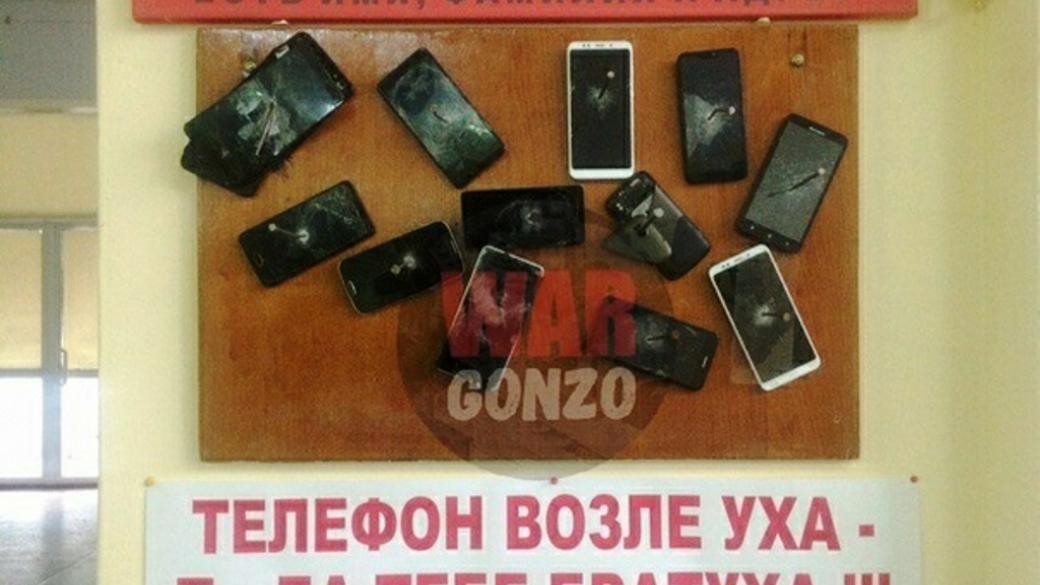 В одном из сообществ в соцсети опубликовано фото прибитых к доске мобильных телефонов, принадлежащих одному из «разведподразделений народной милиции ДНР». Внизу «доски позора» написано: «Телефон возле уха — п… да тебе, братуха».