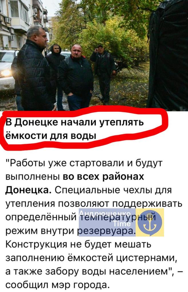 «Работы уже стартовали и будут выполнены во всех районах Донецка. Специальные чехлы для утепления позволяют поддерживать определенный температурный режим внутри резервуара. Конструкция не будет мешать заполнению емкостей цистернами, а также забору воды населением», - сообщил «мэр» Донецка.