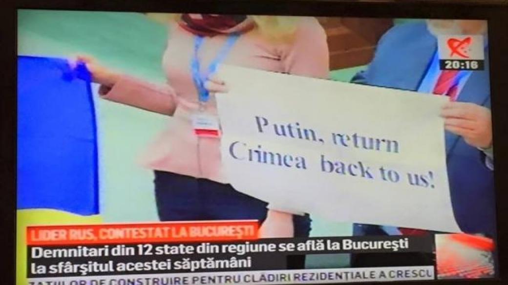 Украинская делегация выступила с акцией протеста против агрессии РФ во время выступления спикера Госдумы РФ Сергея Нарышкина на сессии Парламентской ассамблеи Черноморского экономического сотрудничества (ПАЧЭС), которая прошла в Бухаресте.