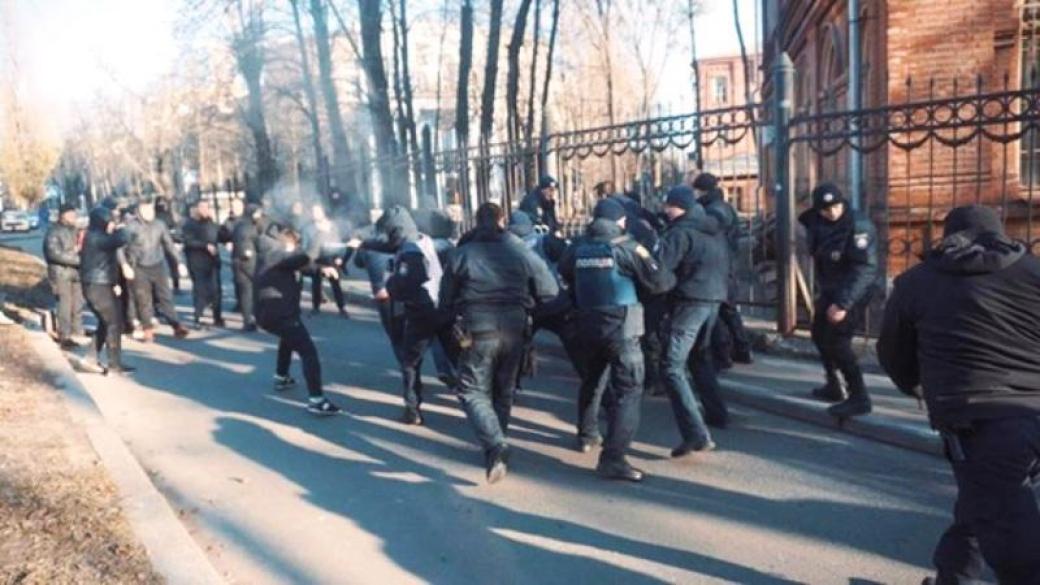 Представители Нацкорпуса разгромили в Киеве ларьки с игровыми автоматами