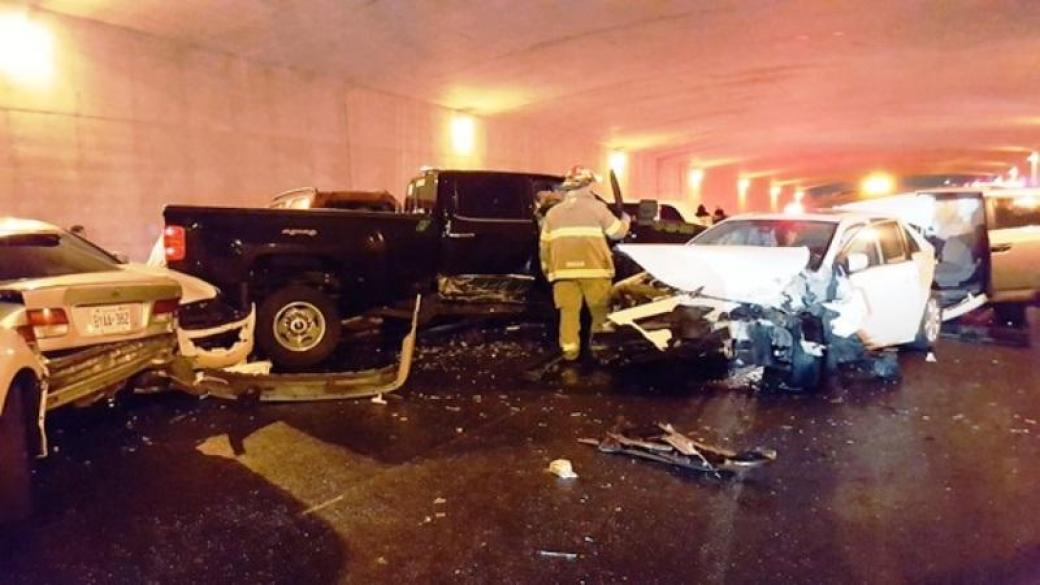 В Канаде в провинции Онтарио из-за гололедицы произошло масштабное ДТП с участием 40 автомобилей, в результате чего пострадали не менее 15 человек.