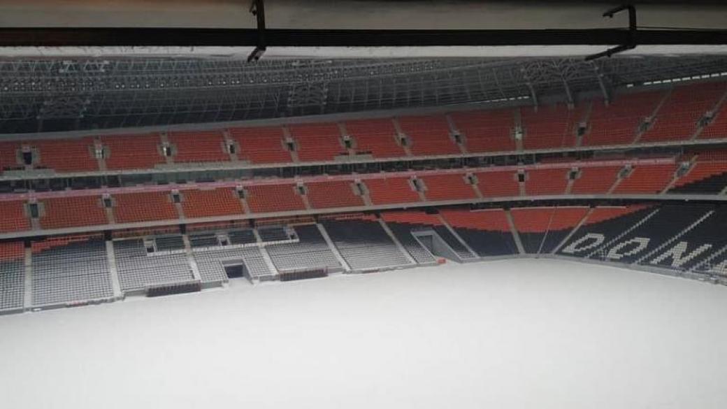 В неподконтрольном Донецке снегопад засыпал известный стадион «Донбасс Арена», построенный к чемпионату Европы по футболу — 2012 украинским олигархом Ринатом Ахметовым.