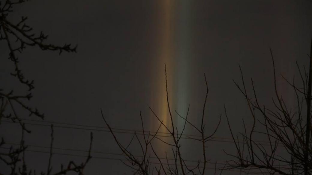 Местный житель опубликовал фотографии необычного природного явления на своей странице в соцсети и написал: «Явление наблюдали в течении полутора часов. „Столбы“ света стояли не шелохнувшись на одних и тех же местах. Фото не подвергались обработке в Фотошопе — фото чистые. Снимки явления сделаны на окраине города, вблизи моря».