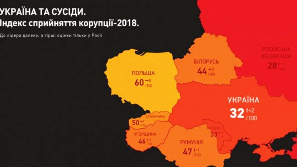 Так, Украина набрала 32 балла и заняла 120 место среди 180 стран, поднявшись на 10 мест (результат за 2017 год — 30 баллов, 130 место).