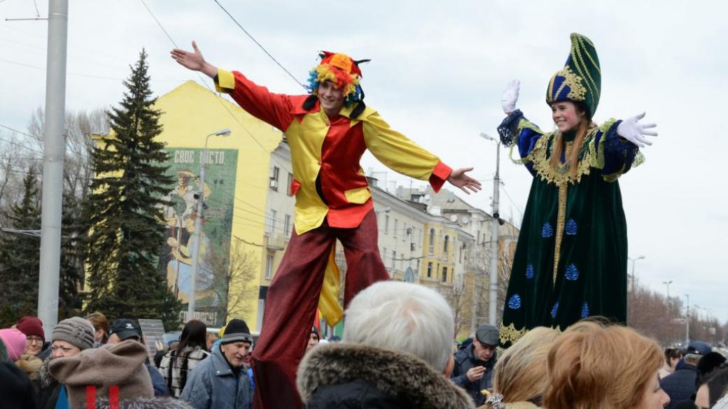 На Театральной площади в центре неподконтрольной Украине Макеевки прошли народные гулянья в честь Масленицы. Об этом сообщают подконтрольные ОРДО СМИ.