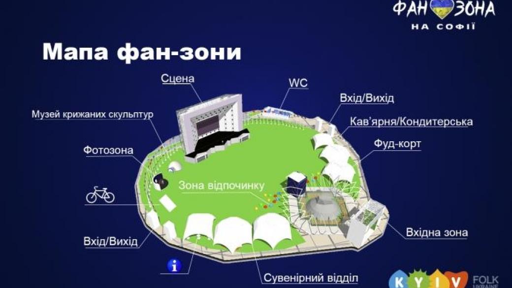 Также, сообщается, что фан-зона будет вмещать сцену с большим экраном, по сторонам от которой установят флаги всех стран-участниц Евровидения.