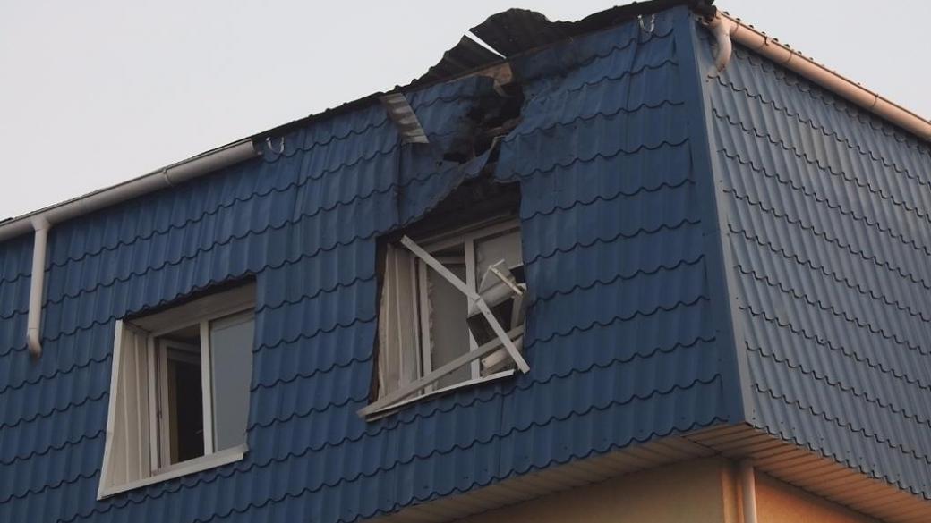 Отмечается, что в результате обстрела в крыше помещения образовалась дыра диаметром 70 см, окно под этим местом разбито.
