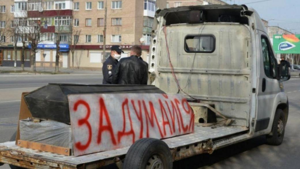 По улицам Староконстантинова ездит грузовой автомобиль с черным гробом и из громкоговорителя призывает к соблюдению правил карантина. Об этом пишет местное издание «В нас. news «.